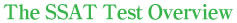 The SSAT consists of two parts: a brief essay, and a multiple-choice aptitude test, which consists of five separately-timed sections: two Quantitative, one Verbal, and one Reading. Following are sample questions which might appear on both Upper and Lower Level tests.